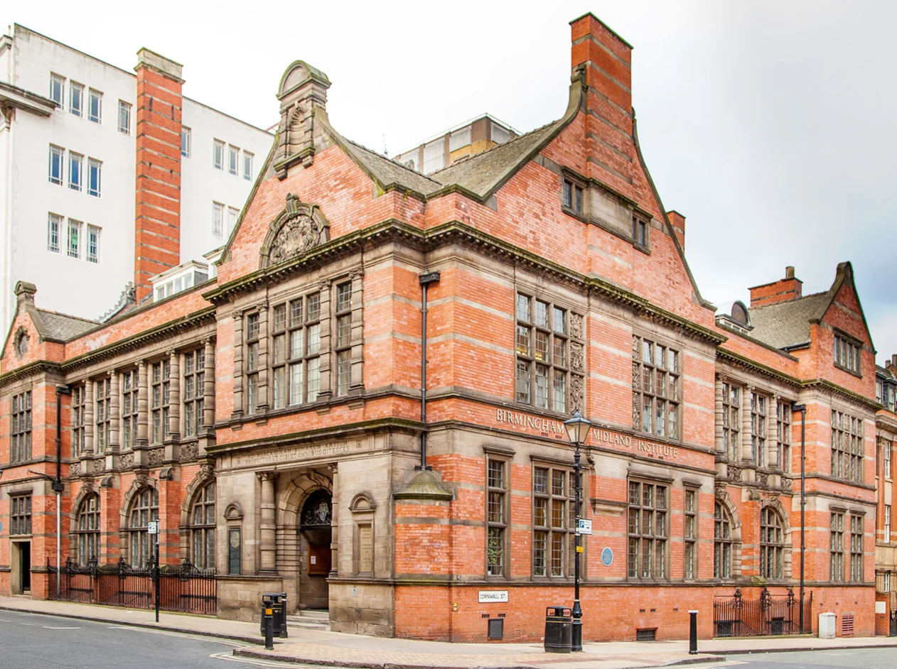 The Birmingham Library was founded in 1779, and moved in 1965 to the Birmingham and Midland Institute’s premises in Margaret Street, which were subsequently enlarged.